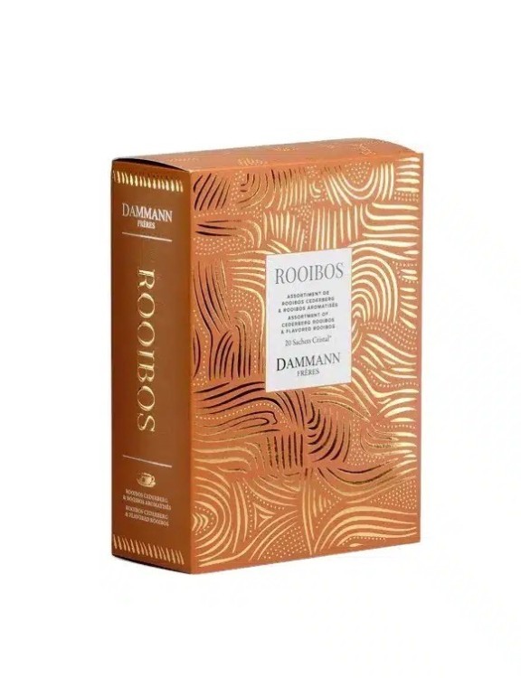 Het groeiende aantal rooibosliefhebbers zal snel gewonnen zijn voor deze doos die ontworpen is rond deze Zuid-Afrikaanse plant. Deze cafeïnevrije plant wordt gewaardeerd om zijn ronde, zachte infusie met van nature houtachtige, subtiel honingachtige noten en is de ideale basis voor het creëren van gastronomische composities om de hele dag van te genieten. Ontdek een assortiment van 20 Cristal® theezakjes met een ontwerp geïnspireerd op traditionele Zuid-Afrikaanse motieven, gebruikt in mandenmakerijen en muurschilderingen.