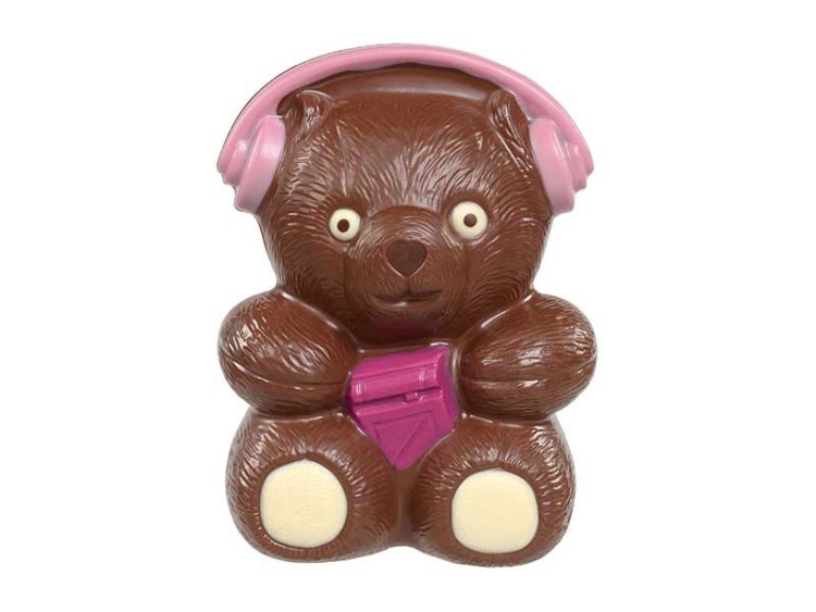 Gedecoreerde beer met koptelefoon - 80 gr - 11 cm.