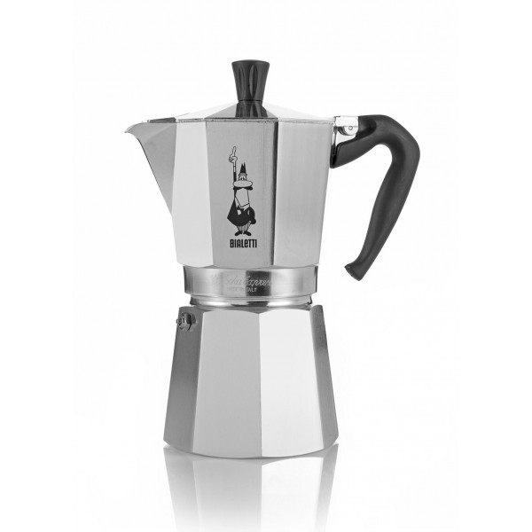 De Bialetti 6 Kops Moka Express is 's werelds meest erkende en gekoesterde koffiezetapparaat. De opvallende achtkantige aluminium pot is gemakkelijk te gebruiken en maakt je koffie klaar op een authentieke wijze. Vul onderaan het reservoir met water, doe gemalen koffie in het filter, schroef het geheel in elkaar en plaats het op een warmtebron. Het water borrelt langzaam omhoog, door de koffie heen en produceert zo een rijke, heerlijke, aromatische espresso in slechts enkele minuten. De aluminium pot is demonteerbaar voor eenvoudige reiniging.