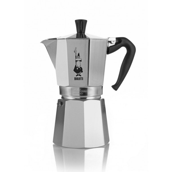 De Bialetti 9 Kops Moka Express is 's werelds meest erkende en gekoesterde koffiezetapparaat. De opvallende achtkantige aluminium pot is gemakkelijk te gebruiken en maakt je koffie klaar op een authentieke wijze. Vul onderaan het reservoir met water, doe gemalen koffie in het filter, schroef het geheel in elkaar en plaats het op een warmtebron. Het water borrelt langzaam omhoog, door de koffie heen en produceert zo een rijke, heerlijke, aromatische espresso in slechts enkele minuten. De aluminium pot is demonteerbaar voor eenvoudige reiniging.Werkt op alle warmtebronnen.