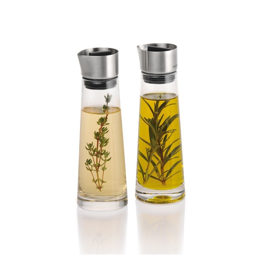 Deze olie- en azijnset van het kwaliteitsmerk Blomus is gemaakt van sterk glas en heeft roestvrijstalen onderdelen. Hierdoor heeft het product een hoge duurzaamheid. Dit setje is ontworpen in een elegante en moderne stijl waardoor ze op elke eettafel tot hun recht komen. Door het handige giet systeem zal knoeien iets van het verleden zijn.