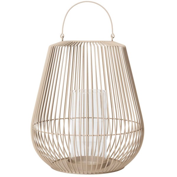 Dit is de Nidea lantaarn S van Blomus. De lantaarn is gemaakt van glas en gepoedercoat staal. De lantaarn heeft een hoogte van 52.5 centimeter en een diameter van 45.5 centimeter. Er is ook een medium variant beschikbaar.