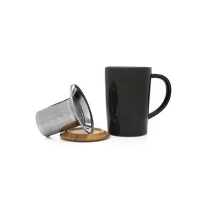 Porselein theetas met RVS filter en bamboo deksel. Ideaal voor het maken van een kop kruidenthee.