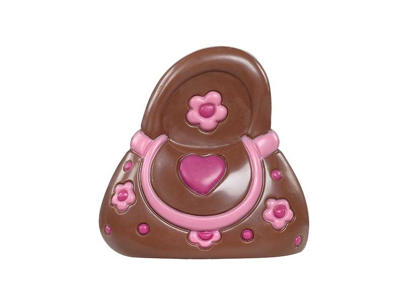 Chocolade gedecoreerde handtas in melk en witte chocolade verkrijgbaar.