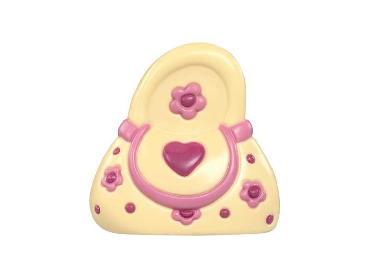 Chocolade gedecoreerde handtas in melk en witte chocolade verkrijgbaar.
