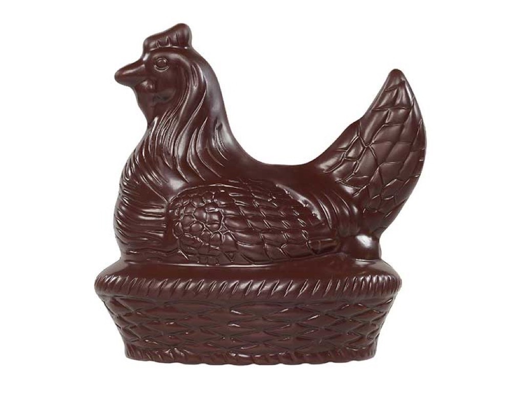 Een kip op mand in witte, melk of fondant verkrijgbaar.