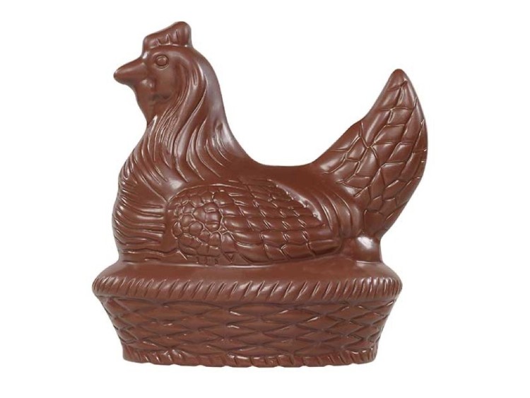 Een kip op mand in witte, melk of fondant verkrijgbaar.