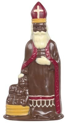 Een gedecoreerde chocolade - Callebaut - Sinterklaas met 3 kinderen van 20 cm hoog en een gewicht van 125 gr.