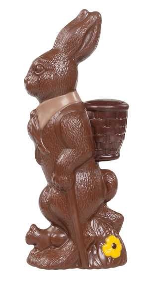 Deze lachhaas is 25 cm hoog, weegt 180 gram en is gemaakt van Belgische Callebaut chocolade. in melk verkrijgbaar