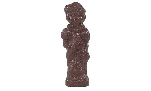 Een chocolade zwarte piet van 25 cm hoog en een gewicht van 250 gr.