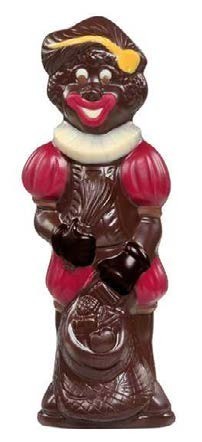 Een chocolade zwarte piet van 25 cm hoog en een gewicht van 250 gr. Verkrijgbaar in melk of fondant chocolade. Mooi, luxueus ingepakt.