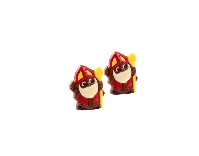 Een zakje gevuld met gedecoreerde Sinterklaasjes in melkchocolaade