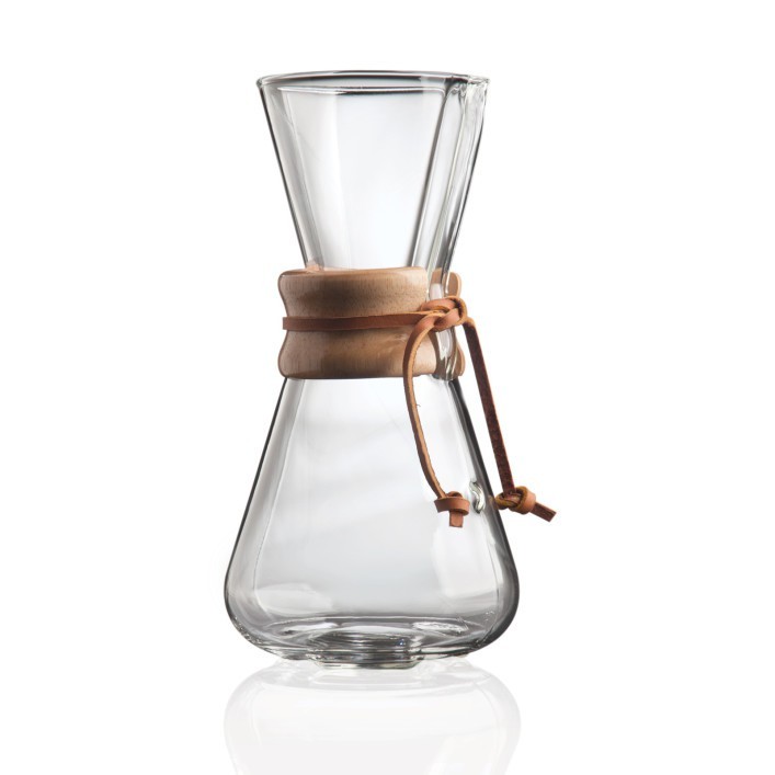 Met de glazen Chemex Classic koffiemaker zet je eenvoudig heerlijke filterkoffie. De Chemex koffiemaker is met zijn houten handkraag en lederen touwtje vandaag de dag nog steeds hip en modern. Het filtersysteem dateert van 1941, en kent tot op heden een plekje in het MoMa (Museum of Modern art) in New York.