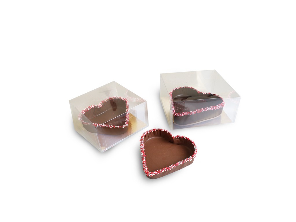 Een chocolade mandje in hartvorm gevuld met de beste schilfertruffels.