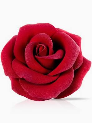 Een melk chocolade roos, rood gedecoreerd.