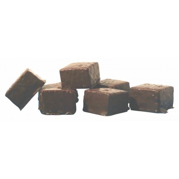 Ingrediënten: suiker, glucose, gelatine, chocolade, cacao, 45,9% suiker, 43,7% cacaoboter, 10% soyalesithine, vaniline, kaliumsorbaat.