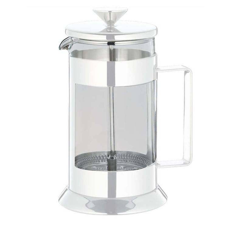 Het principe is heel eenvoudig. Een glazen cilinder wordt gevuld met (vers geroosterde) grof gemalen koffie. Hierop wordt heet water gegoten dat gekookt heeft. Let op! Het water moet van de kook af zijn, zo'n 96 graden. De koffie en het water moeten goed gemengd worden met een plastic lepel. Dit mengsel laat u zo'n 4 minuten trekken. Nu gaat u de filterzeef-eenheid (=metalen zeef) met weinig kracht naar beneden duwen. Doe dit altijd rustig.