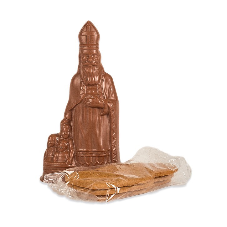 Callebaut chocolade Sinterklaas of zwarte piet - 25 cm - 250 gr -verkrijgbaar in melk, witte of fondant chocolade aangevuld met een pakje speculaas (3 stuks/pakje - 18 cm)