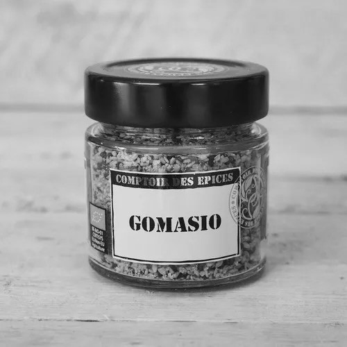 Gomasiozout is een mengeling van zout uit Guérande en geroosterd sesamzaad. Het perfecte middel om vis of groente een Japanse toets te geven.