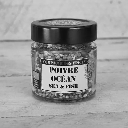 Mengeling van witte peper, roze peper, korianderzaad, venkelzaad en citroenschil.