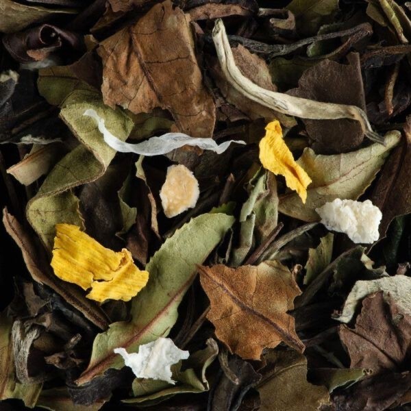 Dominante : exotische vruchten – Witte thee – Een Paï Mu Tan witte thee met verfrissende en fruitige natuurlijke tonen, vermengd met de geuren van bergamot, mango en amandel, geeft de infusie een ronde kop, met een zachte textuur en een zoete en gastronomische smaak.