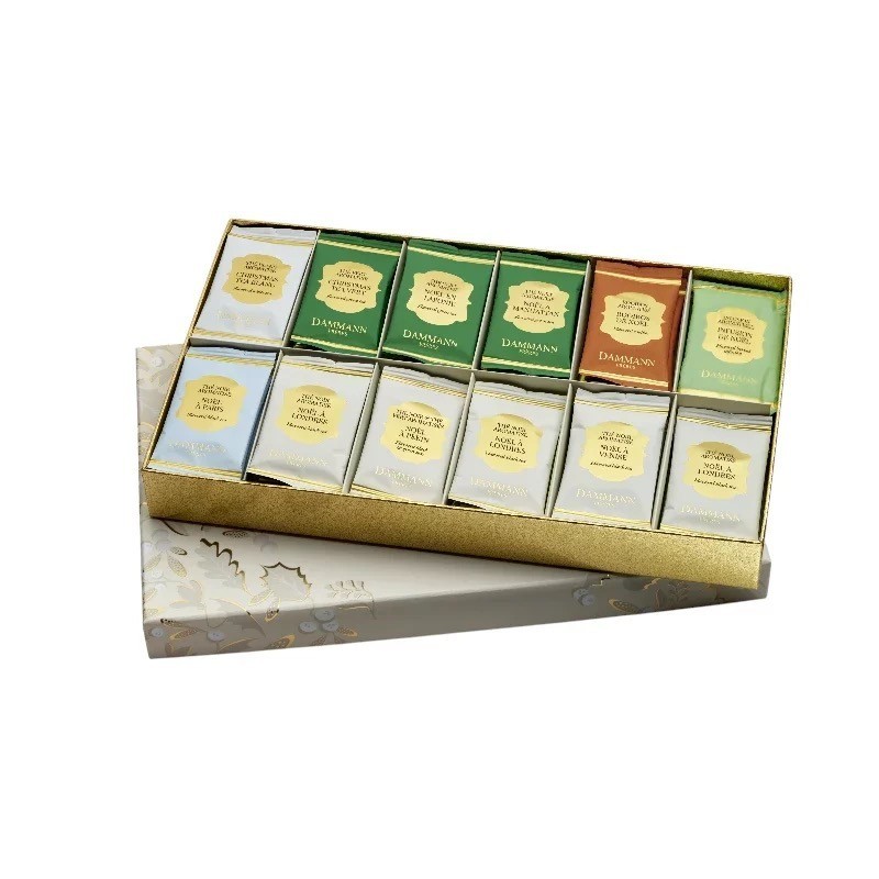 Geïnspireerd door kersttradities uit de hele wereld vormen 12 kersttheeën en infusies een feestelijk assortiment voor fijnproevers en kenners om van te genieten met familie en vrienden. Van Parijs tot Venetië, van Londen tot Manhattan, deze feestelijke melanges hebben fruitige en kruidige noten, allemaal uniek en heerlijk.
