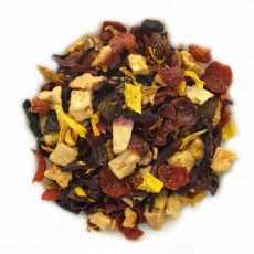 Ingrediënten: hibiscus en rozebottel, schil van rozebottel en sinaasappel, stukjes appel en zonnebloemblaadjes. Aroma van frambozen en aardbeien.