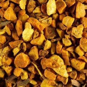 Dominante : kruidig – Kruiden infuus – Bevat geen cafeine -Kurkuma is een vaste plant van de familie Zingiberaceae wiens naam uit het Sanskriet komt . De wortelstokken van de plant worden sinds de oudheid gebruikt als specerij in de Indiase keuken. Dammann combineerde drie kruiden,kurkuma stukjes, gember stukjes, kaneel zonder toevoeging van aroma’s, Dit levert een originele en aromatische infusie die zowel zoet als subtiel peperig is