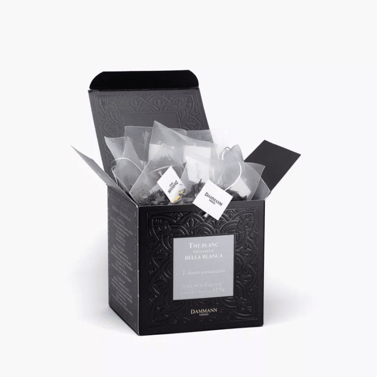 Een witte Paï Mu Tan thee met verfrissende, fruitige natuurlijke noten, gemengd met de geuren van bergamot, mango en amandel om een rond kopje te creëren met een zachte textuur en een zoete, gastronomische smaak.Inhoud: De doosjes bevatten 25 Crystal Tea bags van ieder 2 gr,