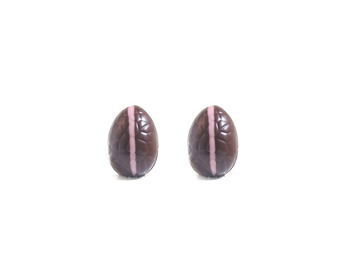 Kleine fondant paaseitjes gevuld met aardbei praliné.