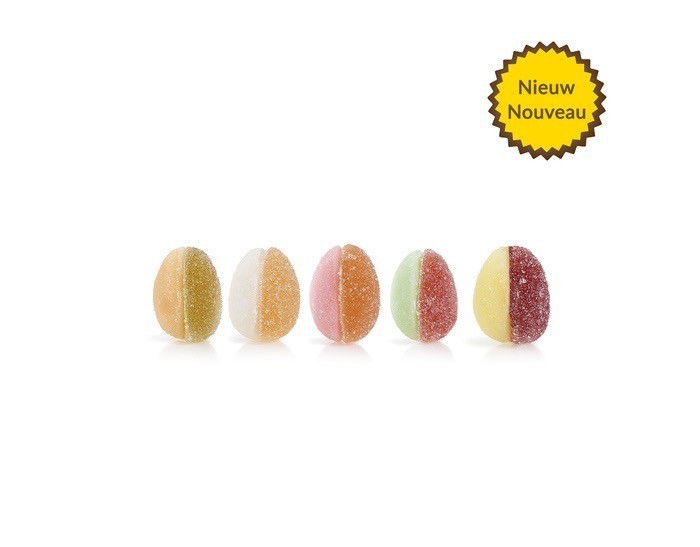 Ingrediënten: suiker, glucosestroop, water, fruit, dextrose, geleermiddel, zuurregelaar, citroenzuur, aroma, plantaardige olie, kippeneiwit, kleurstoffen.