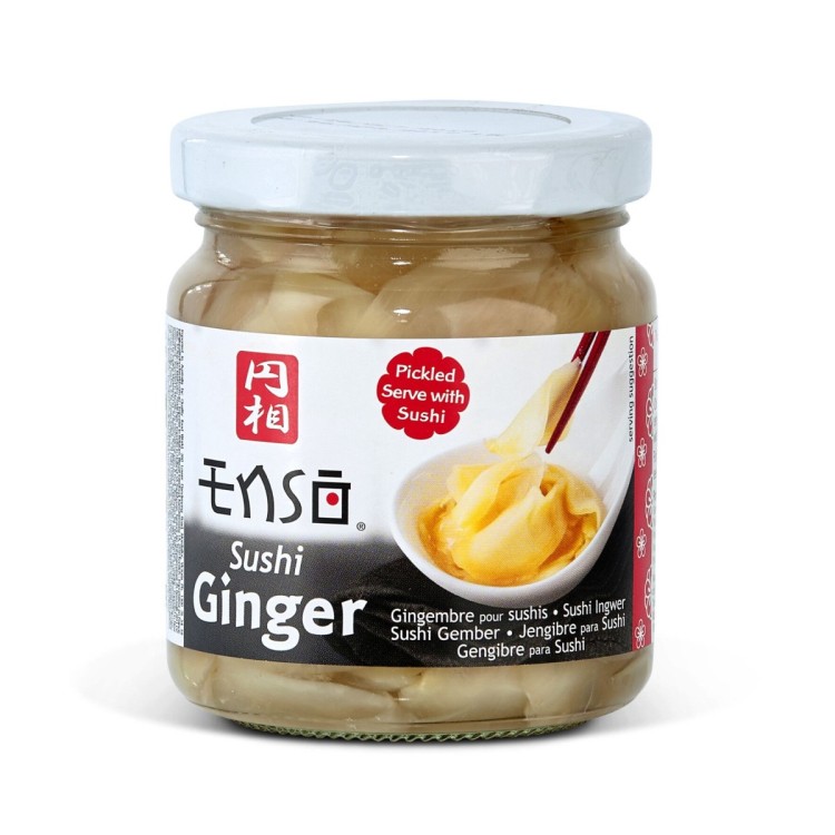 Geniet ook thuis van de authentieke Japanse keuken dankzij de producten van Enso afkomstig uit traditionele recepten. Deze heerlijke en zachte reepjes gekonfijte gember werden op smaak gebracht met rijstazijn en gaan uitstekend samen met uw sushi en sashimi. Serveren volgens de regels van de kunst? Zet ze dan samen met een kommetje sojasaus en een kommetje wasabi op tafel!