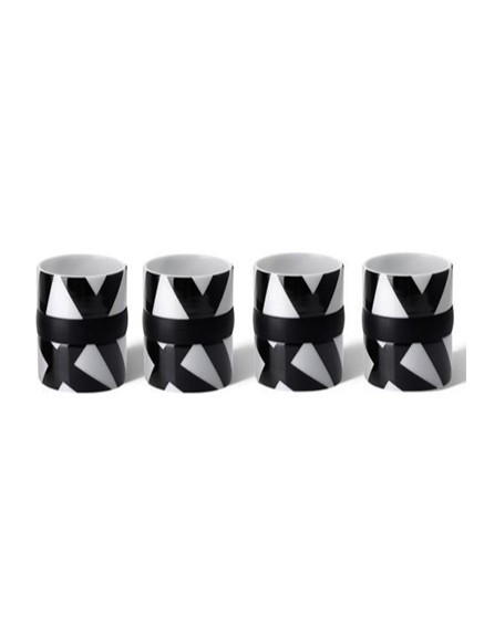 Deze set bestaande uit 4 espresso bekertjes zijn niet alleen prachtig om te zien maar ook comfortabel in het gebruik. Door de silicone ring in het midden van de beker kunt u een hete kop espresso zo vasthouden, zonder dat u een oortje nodig heeft. Het dessin is geïnspireerd op het beroemde werk van de Nederlandse schilder Piet Mondriaan.