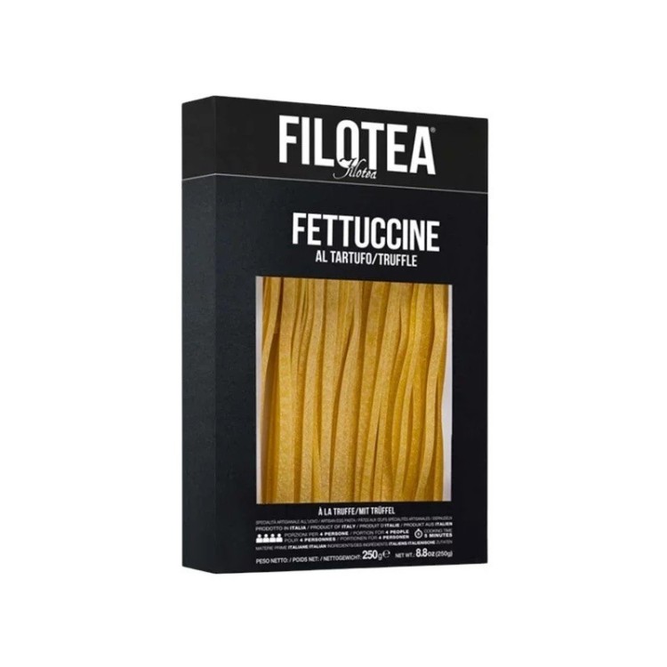 De truffel, een kostbare knol met een onmiskenbaar aroma, is een gewaardeerd en gewild voedingsmiddel. Filotea maakt er een Fettuccina mee die de kwaliteit van zijn eierpasta combineert met die van de zwarte truffel, voor een voorgerecht dat uw gasten in verrukking zal brengen. Filotea’s Fettuccine al Tartufo wordt geproduceerd met de beste Italiaanse grondstoffen in een mengsel van griesmeel van harde tarwe, bloem van zachte tarwe en verse eieren van kippen met vrije uitloop. De pasta wordt bronstig getrokken en minstens 24 uur bij lage temperaturen gedroogd.