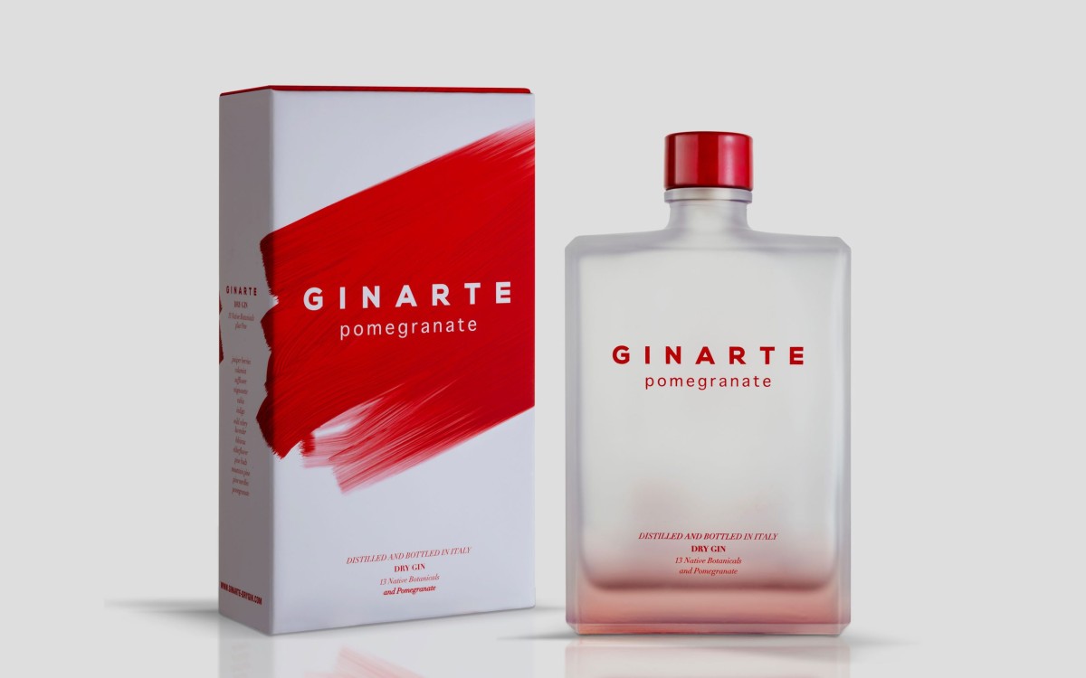 Ginarte Pomegranate. A new delicate pomegranate flavoring that enriches the character of Ginarte and preserves all its elegance and balance. The sophisticated design of the bottle is characterized by elegant intense red screen prints, which recall the vibrant color of the pomegranate fruit.