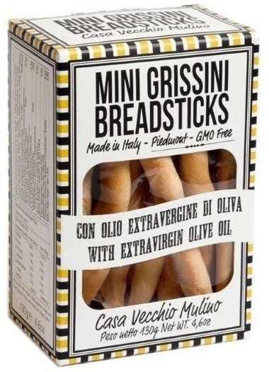 Het grote geheim van Casa Vecchio Mulino dat ze willen delen is de eerste kwaliteit van de ingrediënten, de natuurlijke en langzame rijzen van het deeg, de handgemaakte verwerking (alle dunne reepjes van het deeg nog steeds uitgerekt is met de hand een voor een ), en het langzame bakken waardoor hun soepstengels krokant en goudbruin zijn. Al deze eigenschappen geven onze soepstengels dezelfde smaak en de echtheid van die 150 jaar geleden gemaakt door hun over-over grootvader Giacomo.