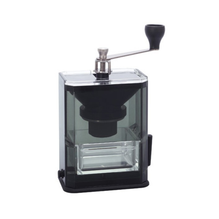 Elegant ontworpen koffiebonenmaler van Hario. design with same great burr set. Met een af te sluiten deksel en een hendel die u vastmaakt aan uw aanrecht (via zuiging) waardoor de molen niet schuift tijden het malen.
