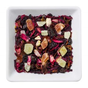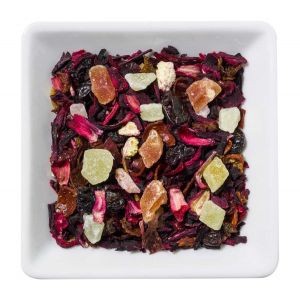 Ingrediënten: hibiscus, rozenbottel, rozijnen, ananas, mango, papaya, stukjes schil van citrusvruchten met natuurlijk aroma.