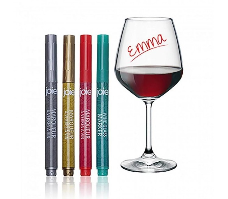 Set van 4 markeerstiften om glazen te markeren.