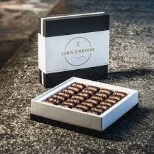 Een luxe linnen doos gevuld met 28 heerlijke artisanale pralines. Gemaakt op basis van 50/50 kwaliteitsmarsepein, omhuld met een krakend laagje Belgische pure chocolade. Een ideaal cadeau om mee te nemen naar een diner bij familie of vrienden.