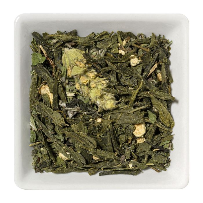 Ingrediënten: Groene thee*, gember*, appelmunt*, salie*, Grieks Bergthee*.