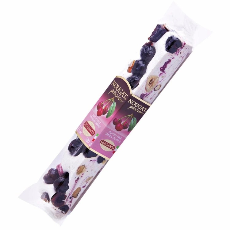 Ingrediënten: suiker, amandelen, hazelnoten, gekonfijte kersen, room met kersen, smaakstoffen, honing, glucosestroop, ei albunine, wafel.