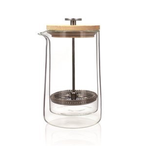 Dubbelwandig koffiezetapparaat van borosilicaatglas dat je koffie heet houdt Het dubbelwandige ontwerp voorkomt dat je je brandt aan het glas Houten deksel Dit dubbelwandige borosilicaatglas piston koffiezetapparaat van OGO Living brengt een vleugje design in je keuken, maar bovenal een uitzonderlijk kopje koffie. Voeg de gewenste hoeveelheid gemalen koffie toe en giet kokend water in het hittebestendige koffiezetapparaat. Wacht 4 minuten, knijp en geniet!