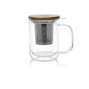 Dubbelwandige theetas metruime zeef. Noors design die uitnodigt tot relaxen. Natuurlijke uitstraling door het deksel in acacia.