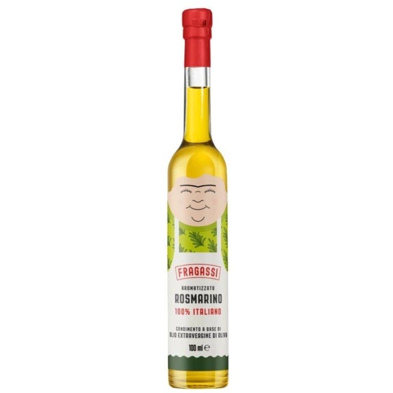 Zachte extra vergine olijfolie uit de Abruzzen met rozemarijn. biologisch verbouwd.