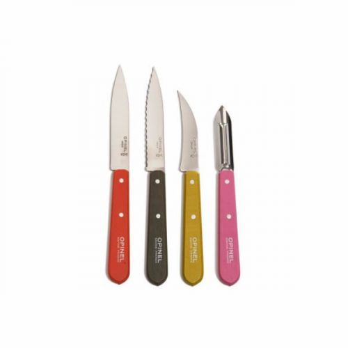 Opinel N°112 Schilmes, Opinel N°113 gekarteld mes, Opinel N°114 groentemes en Opinel N°115 dunschiller in een mooie geschenkverpakking.
