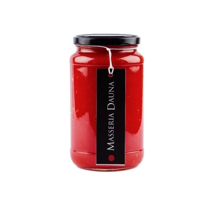 n huis gemaakte passata van Premium tomaten uit Puglia, gemaakt van ronde, gezonde en rijpe tomaten, geproduceerd door op boerderij, met de hand geplukt en geselecteerd in het open veld. Een product uit de tijd dat de echtheid van de producten van de aarde en van het werk van mensen eraan herinnerde dat eten niet alleen voeding is, maar vooral een levenservaring waarin alles is inbegrepen: de vermoeidheid van het werk, het wonder van de ritmes van de seizoenen en geschenken van de natuur, dankbaarheid voor de ontvangen vruchten, het plezier om ze te kunnen delen met degenen van wie we houden.