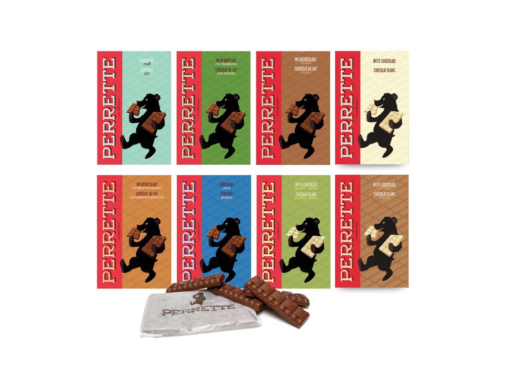 De melkchocolade is een Belgische chocolade (34% cacao ) met minder suiker (38,8%). Het zoetgevoel is hoger omdat een deel van de melk rollergedroogd is. Dit geeft de chocolade, zonder toevoeging van suiker, een gekarameliseerde toets.