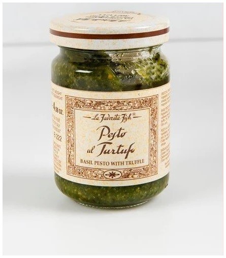 Ingrediënten: extra zuivere olijfolie, witte truffel, basilicum, pijnboompitten, cashewnoten, zeezout, ajuin, citroenzuur.