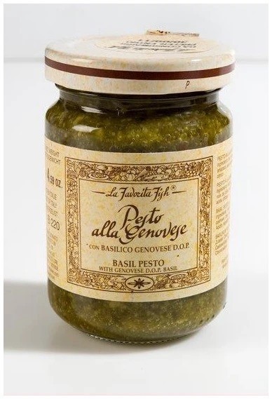 Pesto alla Genovese is de enige echte pesto die ondanks haar eenvoudige ingrediënten zeer inspirerend is: basilicum, look, pijnnoten en extra zuivere olijfolie.